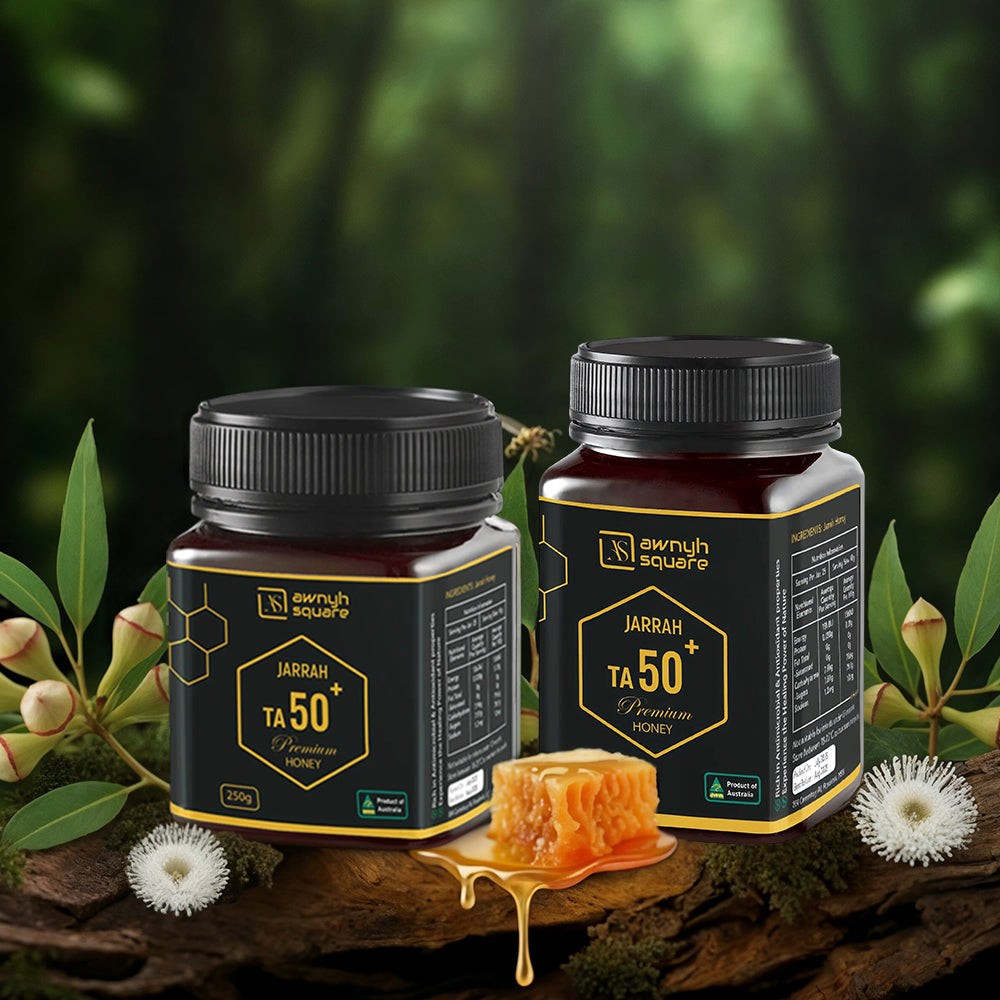 Jarrah honey with a Total Activity (TA) rating of 50+ is renowned for its exceptional antimicrobial strength, making it one of the most powerful medicinal honeys in the world. The TA rating measures the honey’s ability to kill bacteria, yeast and fungi — similar to the way phenol (a disinfectant) does. A TA50+ rating means this honey is equivalent to a 50% phenol solution which is extremely potent and rare.